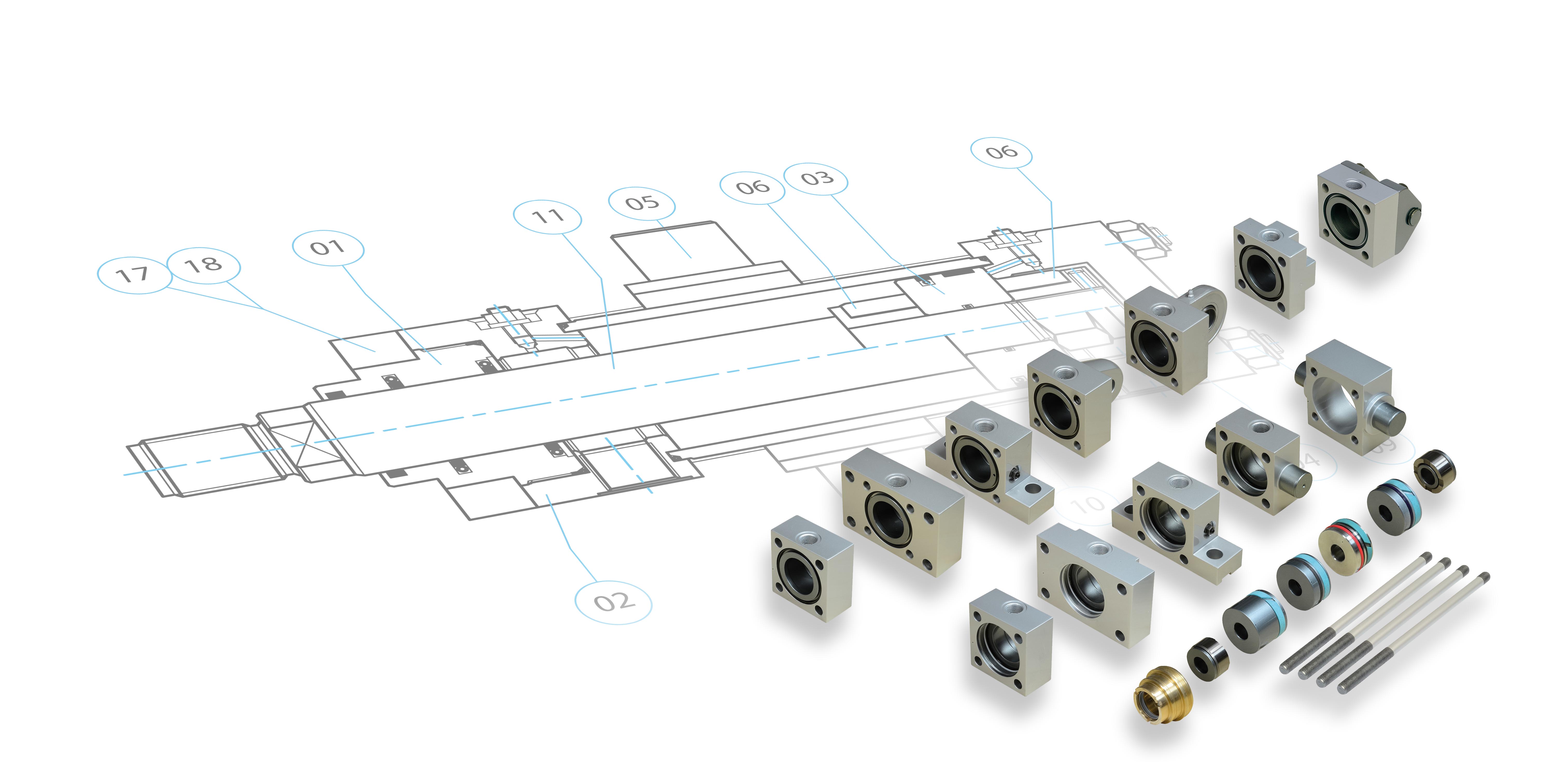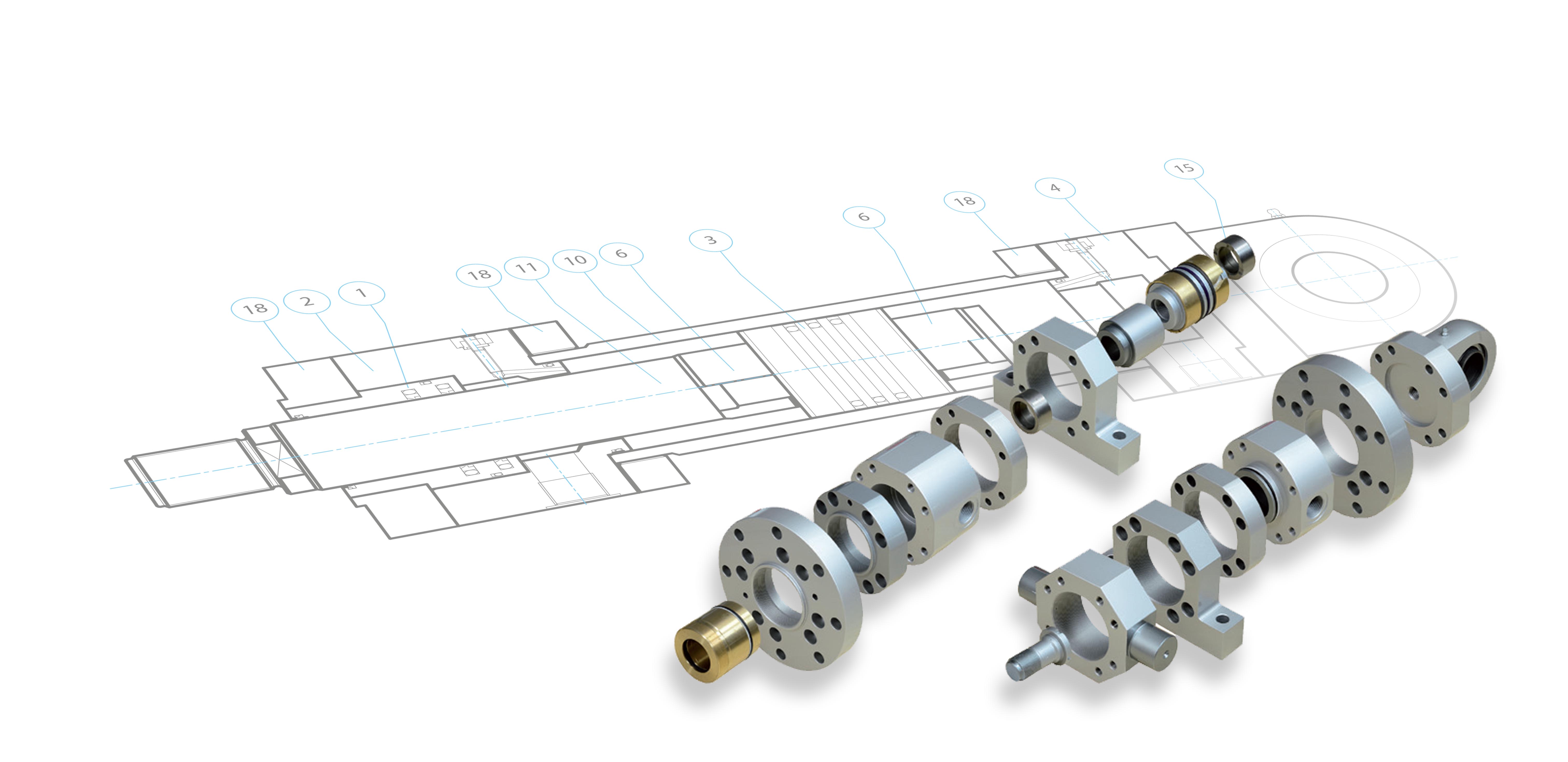Ogni cilindro oleodinamico è su misura. Il configuratore permette di selezionare rapidamente le caratteristiche ottimali scegliendo tra le numerose opzioni e personalizzazioni disponibili, e di scaricare modelli 2D/3D e documentazione tecnica completa, facilitando l'integrazione nei progetti più complessi.Nell'area PRISMA del nostro sito è disponibile un servizio di supporto completo per utilizzare i nostri kit in modo semplice, efficace e rapido: si inserisce il codice del cilindro da realizzare e si ottiene la lista dei componenti necessari e i disegni di lavorazione delle parti su misura (canna, stelo, tiranti). Si può così procedere direttamente all'ordine, senza rischio di errori.